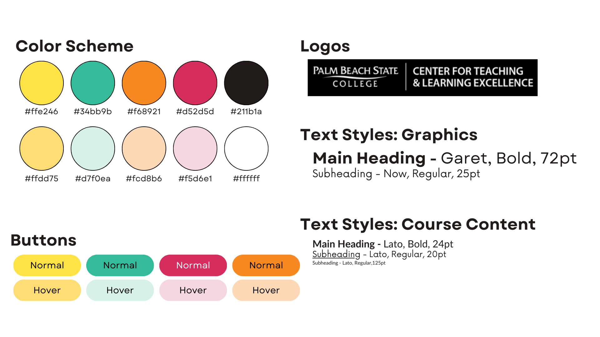The style guide for the course "Elevate Engagement: Active Learning Experiences in Higher Education" was crafted to ensure an aesthetically pleasing yet cognitively efficient learning experience. The following outlines the thought process, decisions, and mock-up design created to achieve this objective.